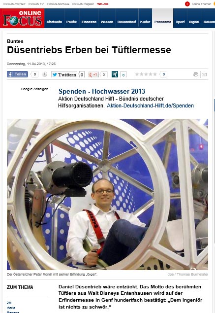 "Düsentriebs Erben bei Erfindermesse". [...]